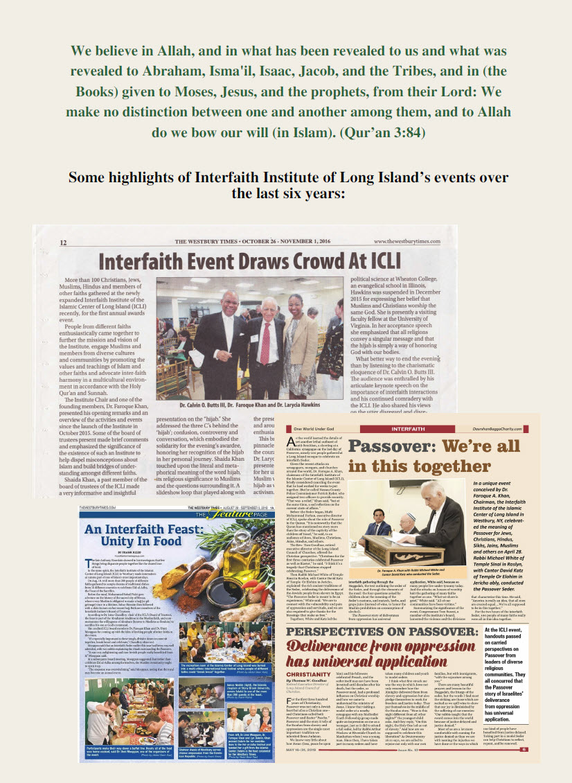 For additional information about the Advisory Board members and the Executive Committee members of the Interfaith institute of Long Island, kindly visit: www.interfaithny.com