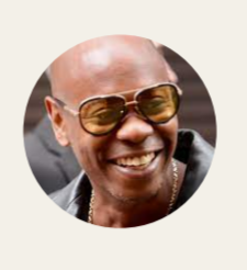 Dave Chappelle is a stand-up comedian and actor, best known for his series Chappelle’s Show (2003-2006). His satirical humor allowed him to perform sporadically in stand-up comedy clubs before returning back to the spotlight with the Netflix special Dave Chappelle’s Equanimity and Broadway’s Dave Chappelle Live on Broadway, winning several Grammy awards.
